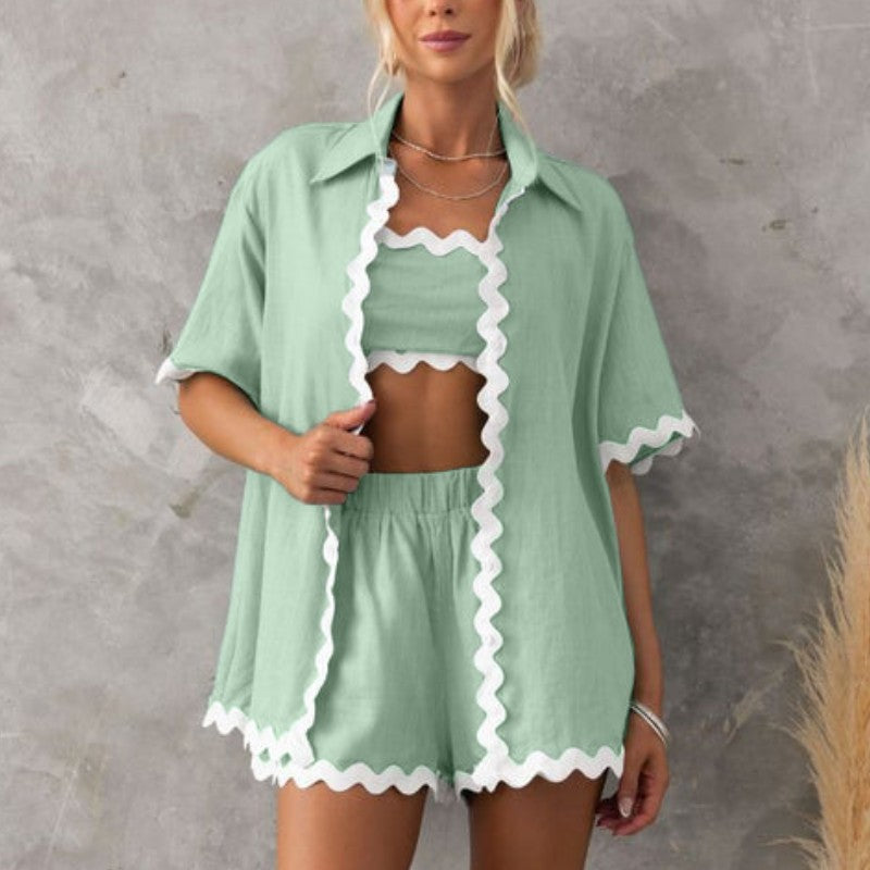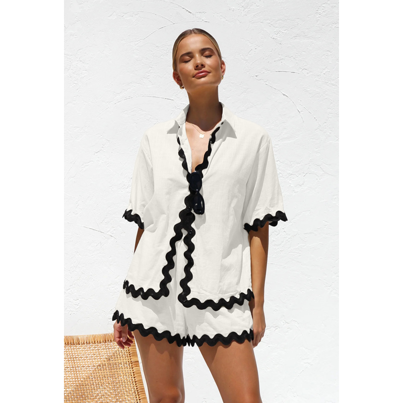EASY TO WEAR - Convenient button-down style top, high waist shorts with an elastic waistband for a secure and adjustable fit.