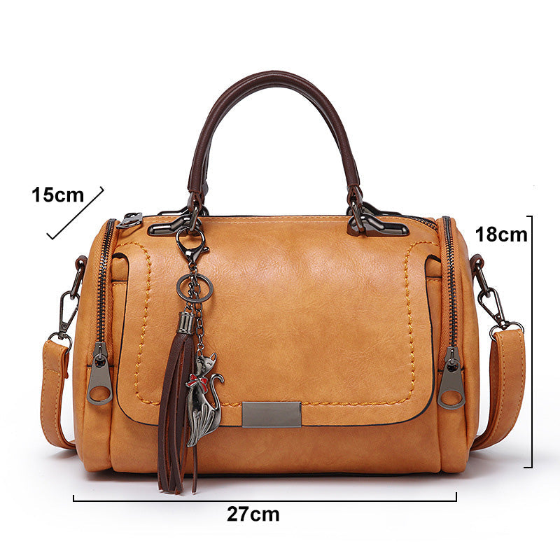 CHIC DESIGN AND VERSATILE COLORS - Available in an array of stylish colors, this handbag complements a wide range of outfits and occasions. Its horizontal square shape adds a touch of elegance, while the tassel and metal cat pendant zipper details enhance its overall appeal.
