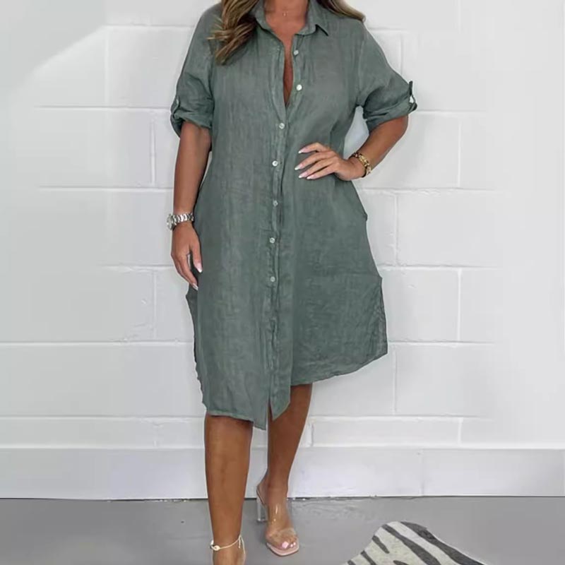Elevate Your Casual Style with Ease! This Cotton and Linen button-shirt dress is a wardrobe staple that offers comfort and versatility. Whether you're running errands, meeting friends for brunch, or heading to the office, this dress effortlessly combines style and practicality for a look that's always on point.