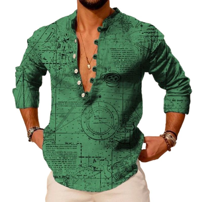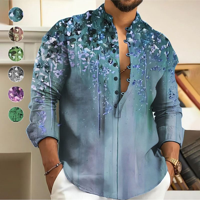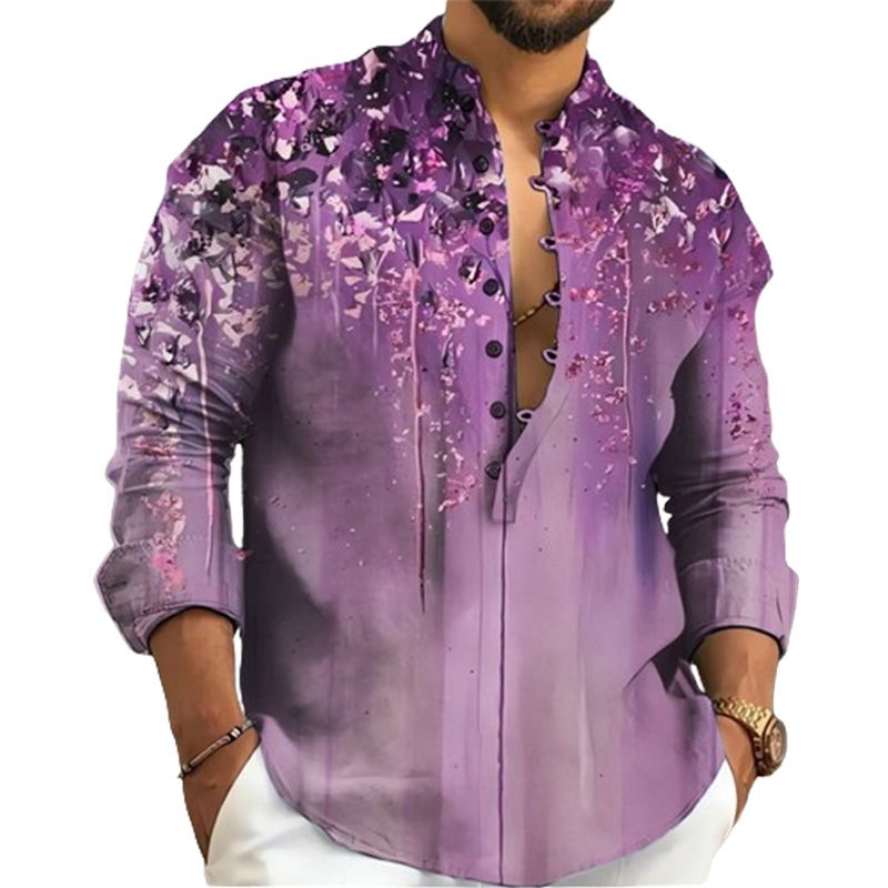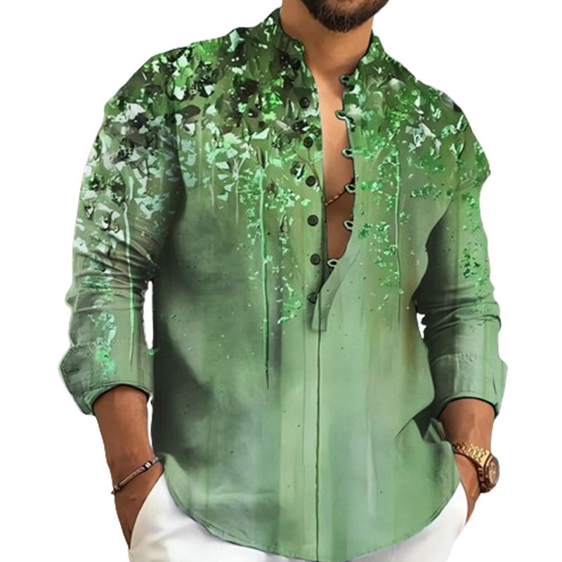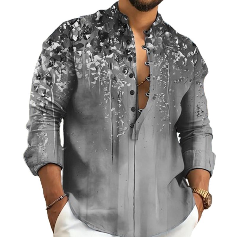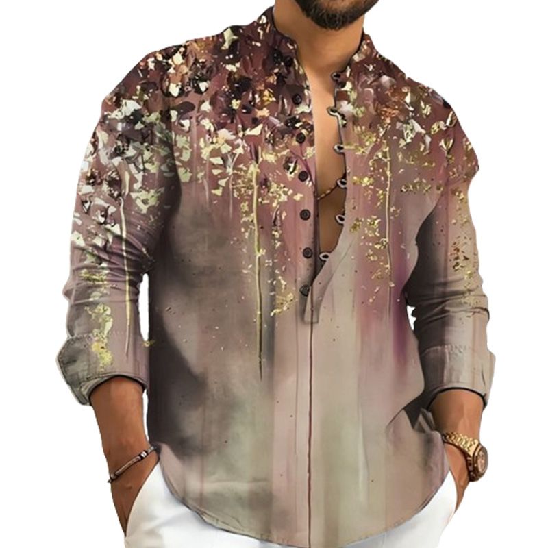 Men's Stand Collar Casual Print Long-sleeve Shirt
