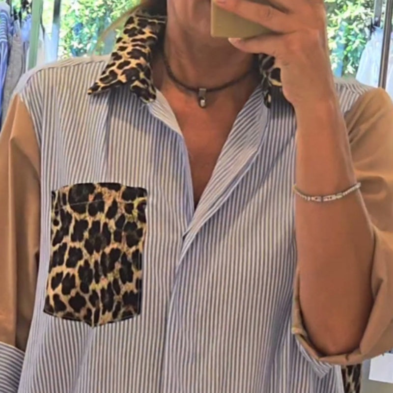 CHIC LEOPARD & STRIPE PATCHWORK - Features a stylish combination of leopard print and stripes, adding a bold and trendy edge to your wardrobe. Perfect for making a fashion statement while staying comfortable.