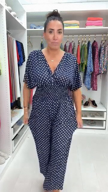 The Polka Dot Printed Elastic Waist Jumpsuit is a stunning and alluring piece. With its captivating print and deep V-neck design, it's perfect for making a bold fashion statement.