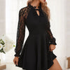 Elegant Lace Sleeve Dress with Adjustable Tie-Neck