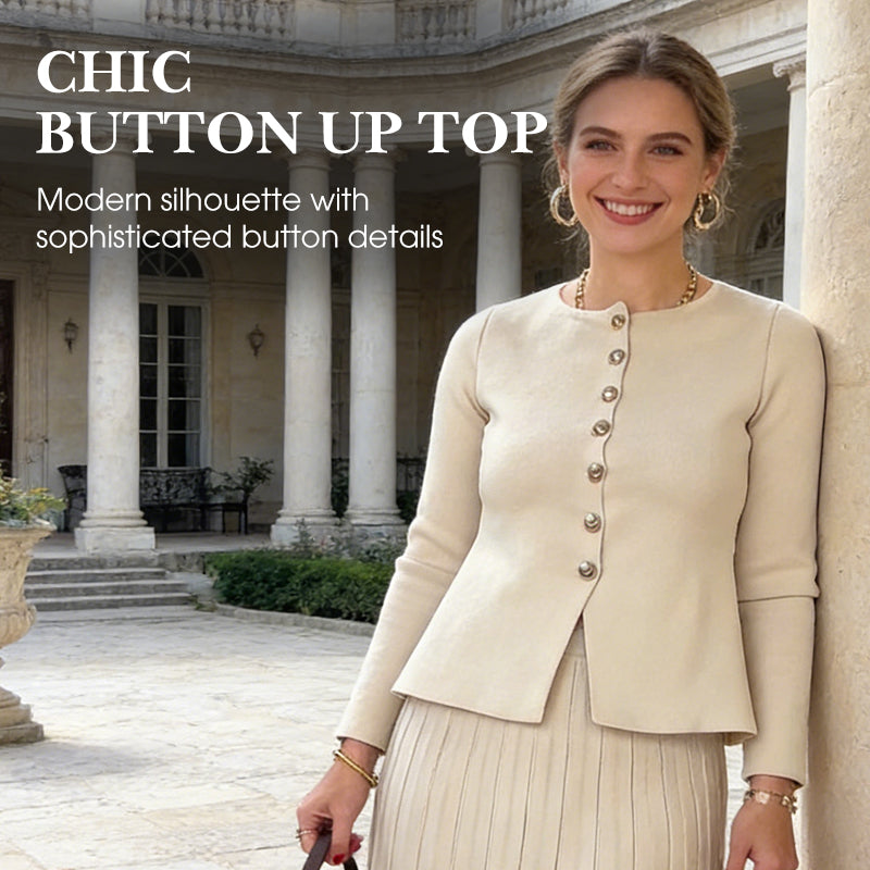 ELEGANT BUTTON-UP TOP - The collarless neckline and single row of polished buttons create a clean, modern silhouette. This timeless design effortlessly elevates your look, making it perfect for both office and special occasions.