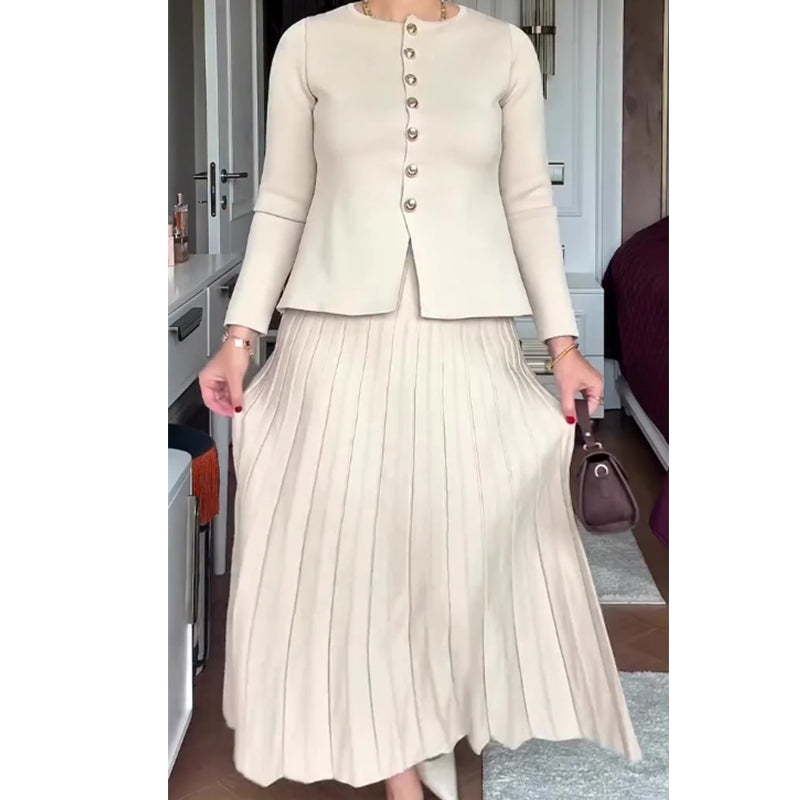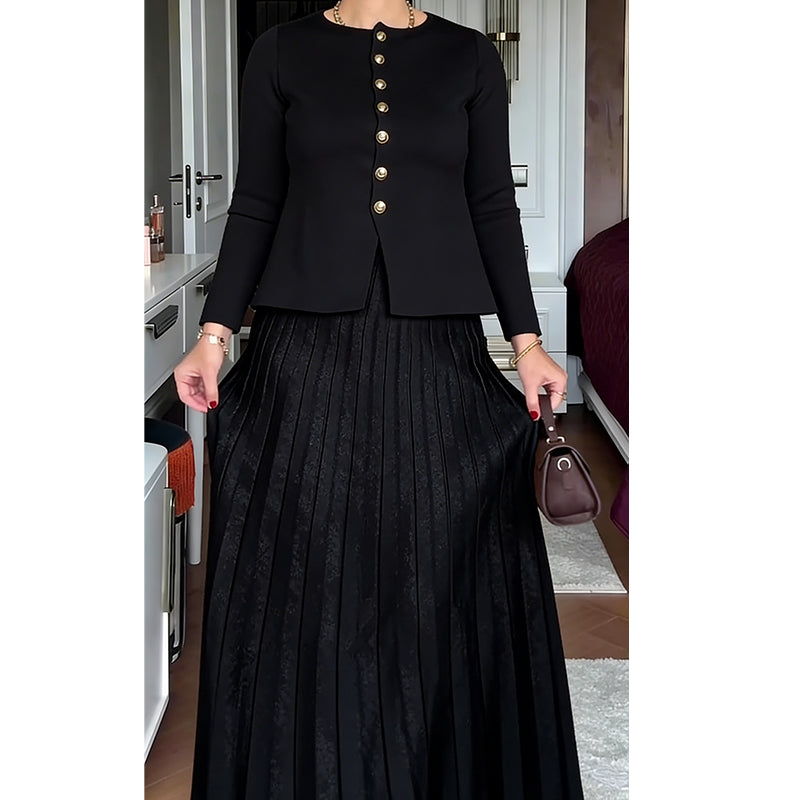CLASSIC PLEATED SKIRT - The pleated skirt offers graceful movement and a flattering A-line shape. It provides a timeless feminine charm while ensuring comfortable wear and a sophisticated appearance for any event.