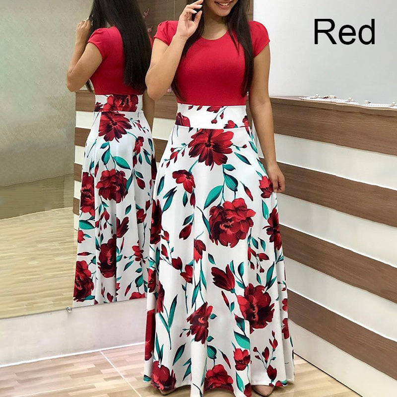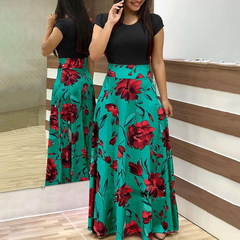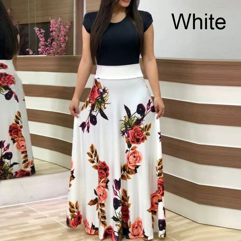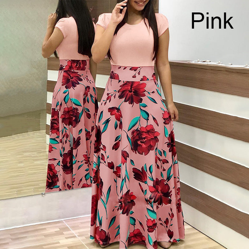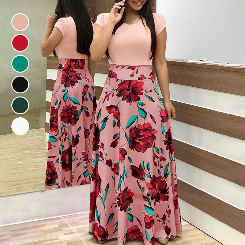Fashion Colorblocking Printed Slim Long Dress