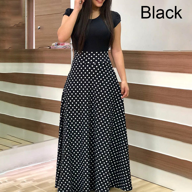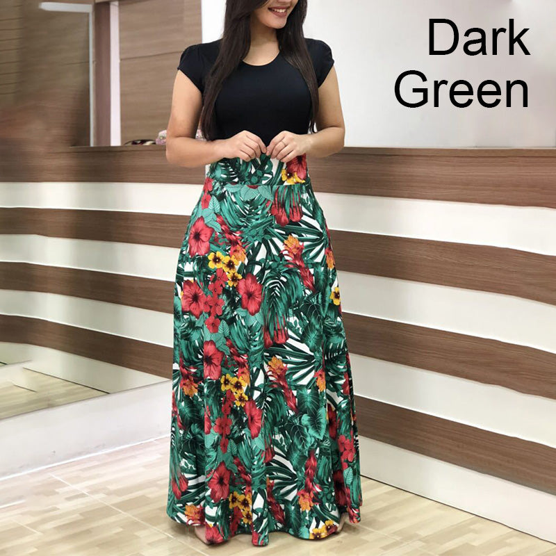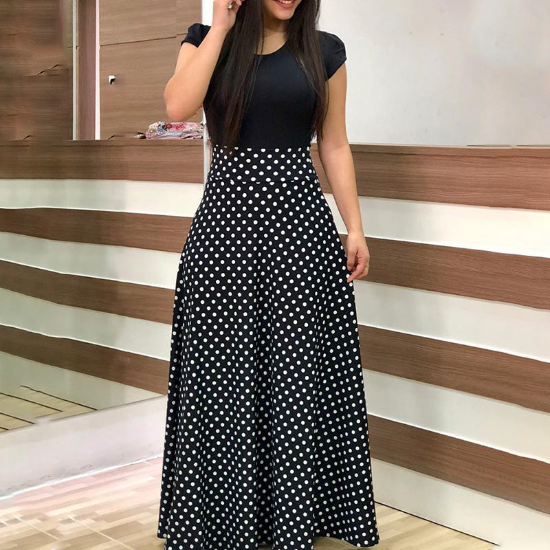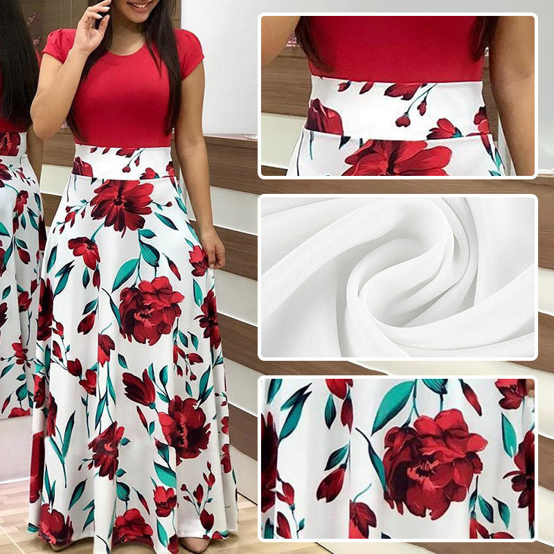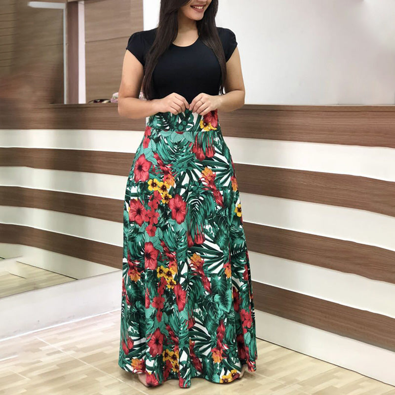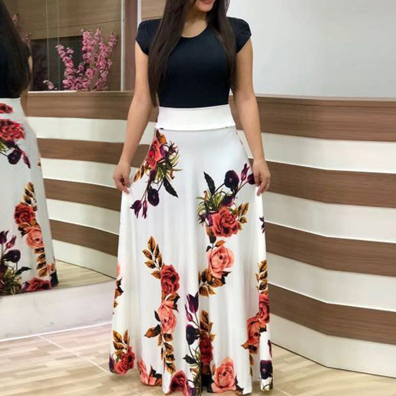 Fashion Colorblocking Printed Slim Long Dress