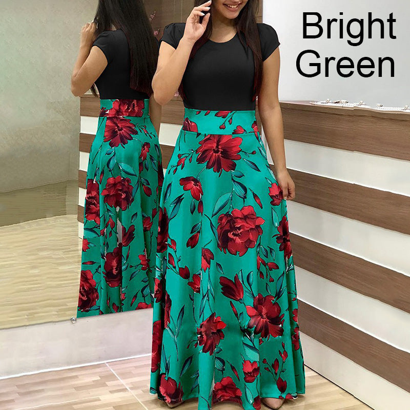 1 * Fashion Colorblocking Printed Slim Long Dress
