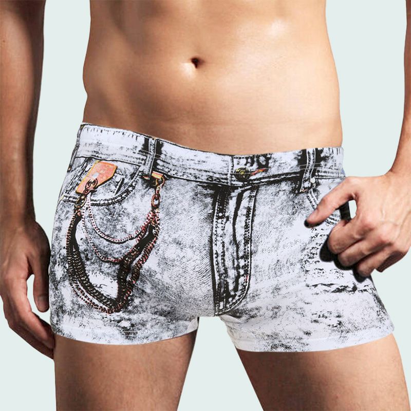 1/2 * Men's Faux Denim Printed Cotton Boxer Briefs