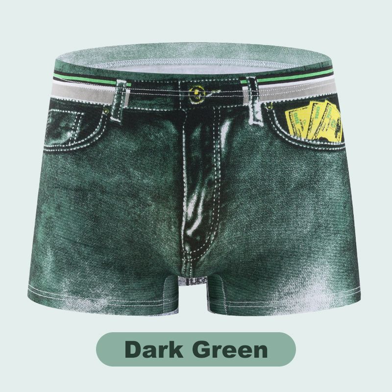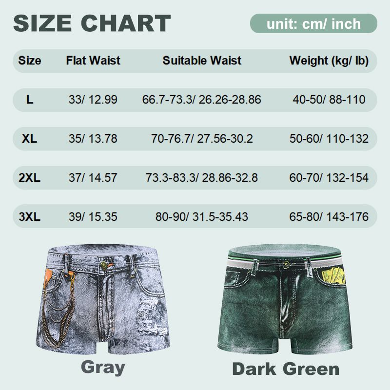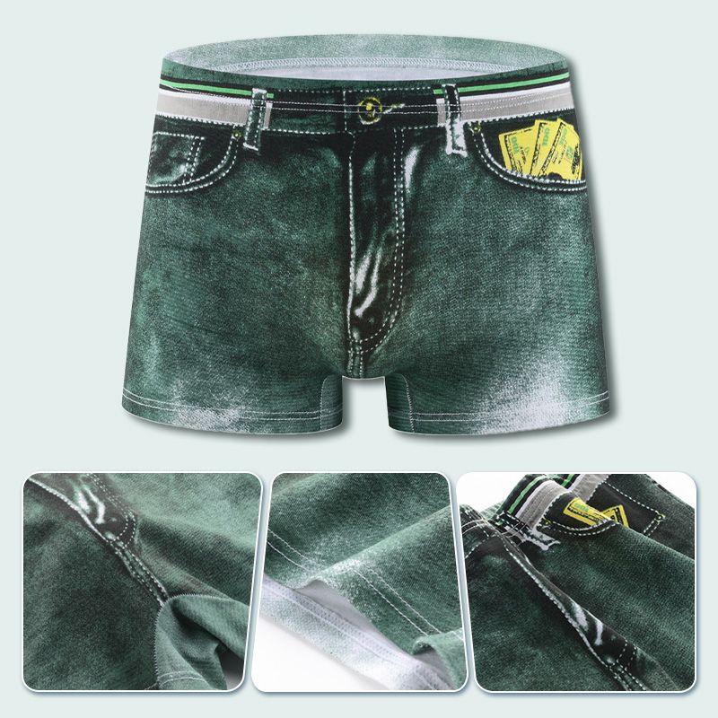 FAUX DENIM PRINT: The printed faux denim detailing adds a playful and youthful vibe, making these boxer briefs a standout choice in your underwear collection.