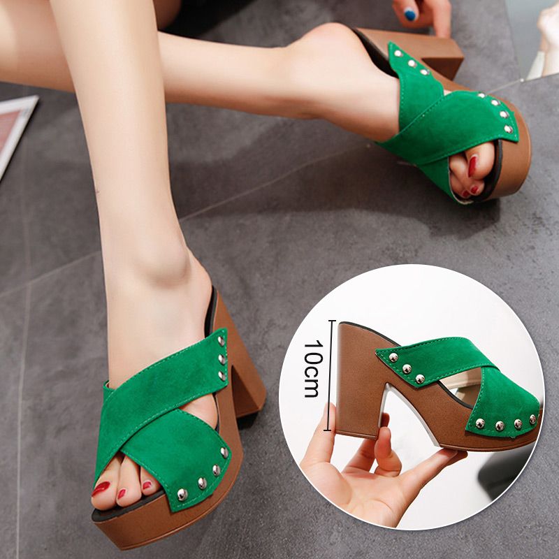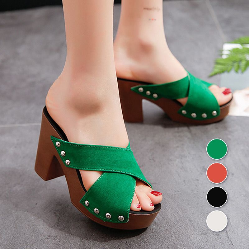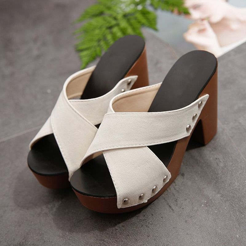 Women's Platform Chunky High-heeled Slippers🥰🥰Mother's Day Promotion-49% Off