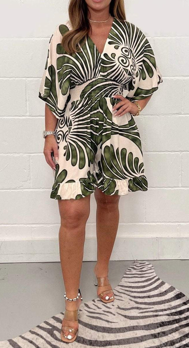 🔥 New Bestsellers🔥Women's Plant Printed Casual Short Jumpsuit
