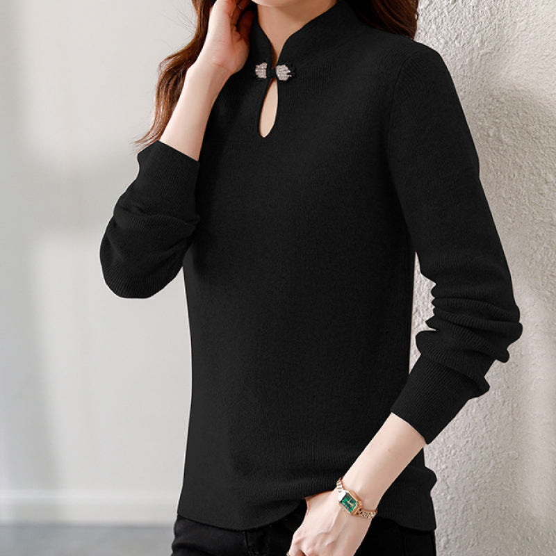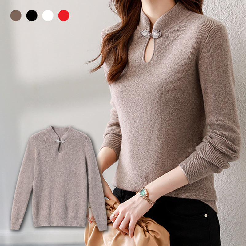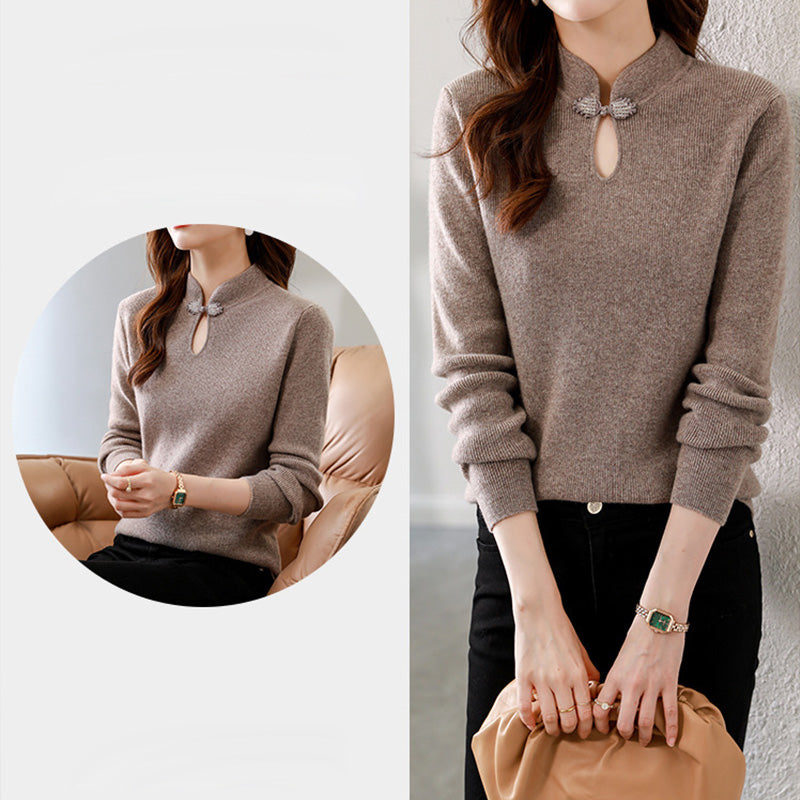 1* Retro cheongsam collar knitted bottoming sweater pullover