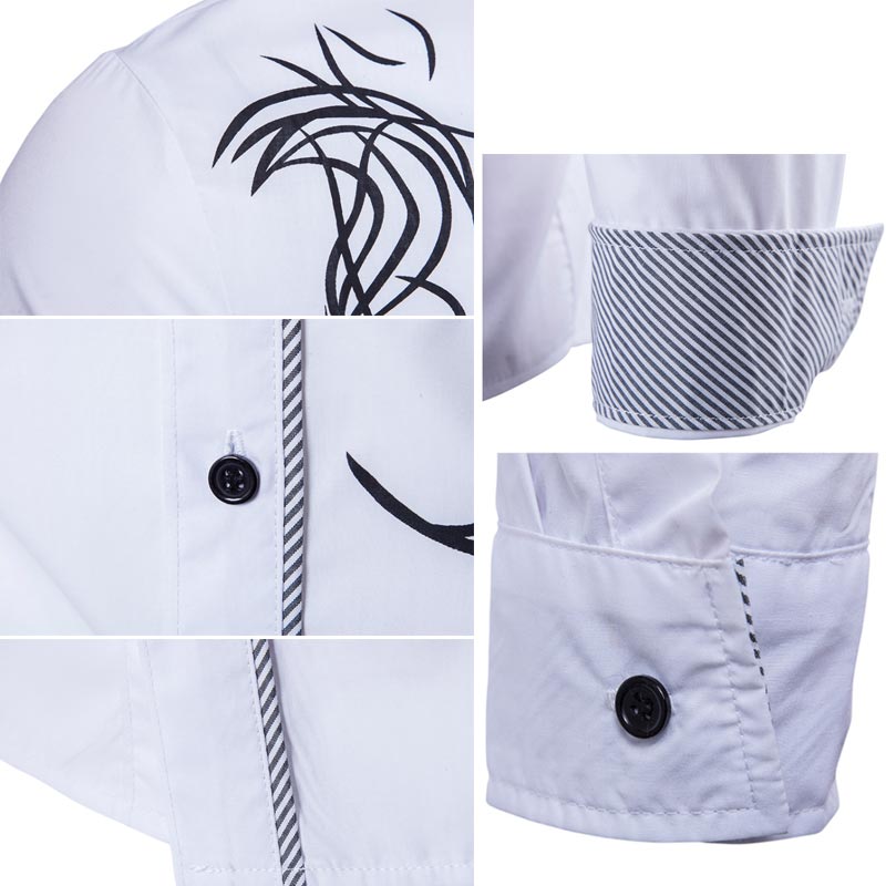 The slim-fit design of this shirt is tailored to flatter your body and give you a sleek and polished look. It is perfect for any occasion, whether it's a casual day out or a formal event. The dragon print adds a touch of edginess and uniqueness to the shirt, making it a standout piece in your wardrobe.
