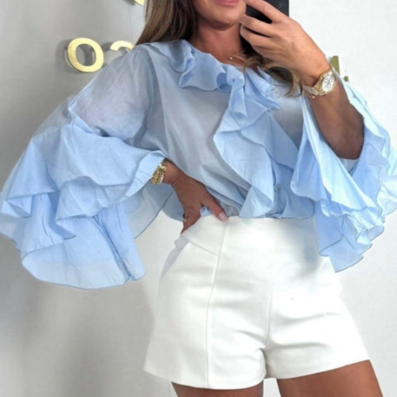 FEMININE RUFFLE DETAILS - The ruffle accents add a feminine touch, elevating the overall style of the blouse. Enjoy a flattering design that enhances your silhouette and complements your personal style.
