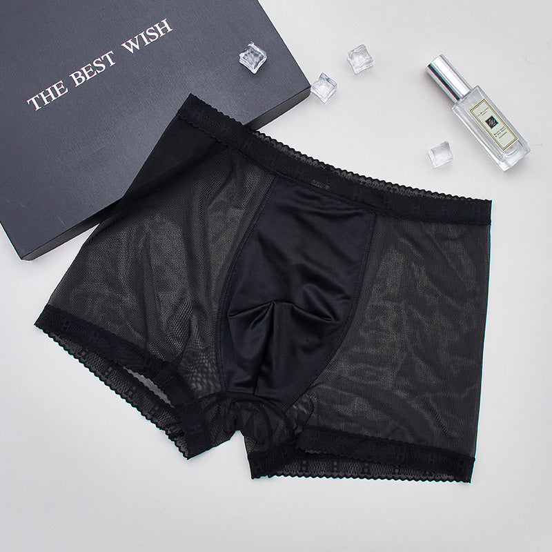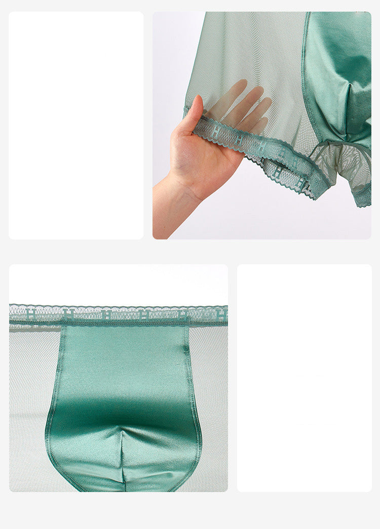 1/4/7* Men's High-End Satin Luxury Lace Breathable Mesh Seamless Antibacterial Boxer Briefs