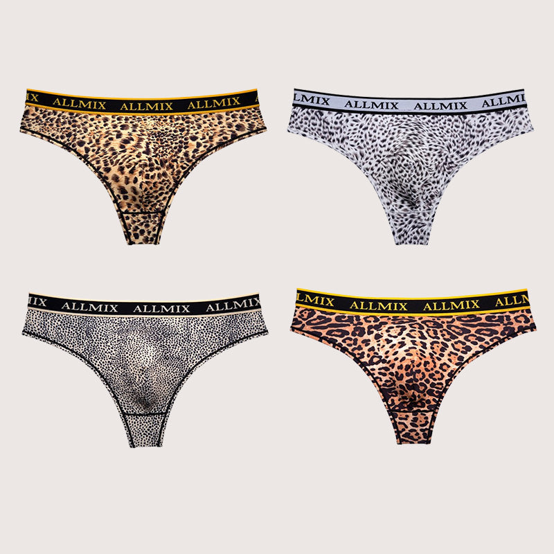 Or 4*Men's Letter Leopard Print Low Rise Fashion Thong