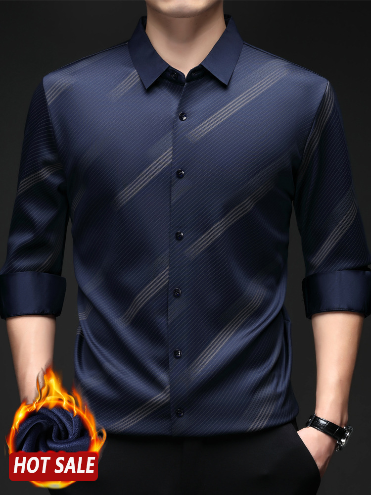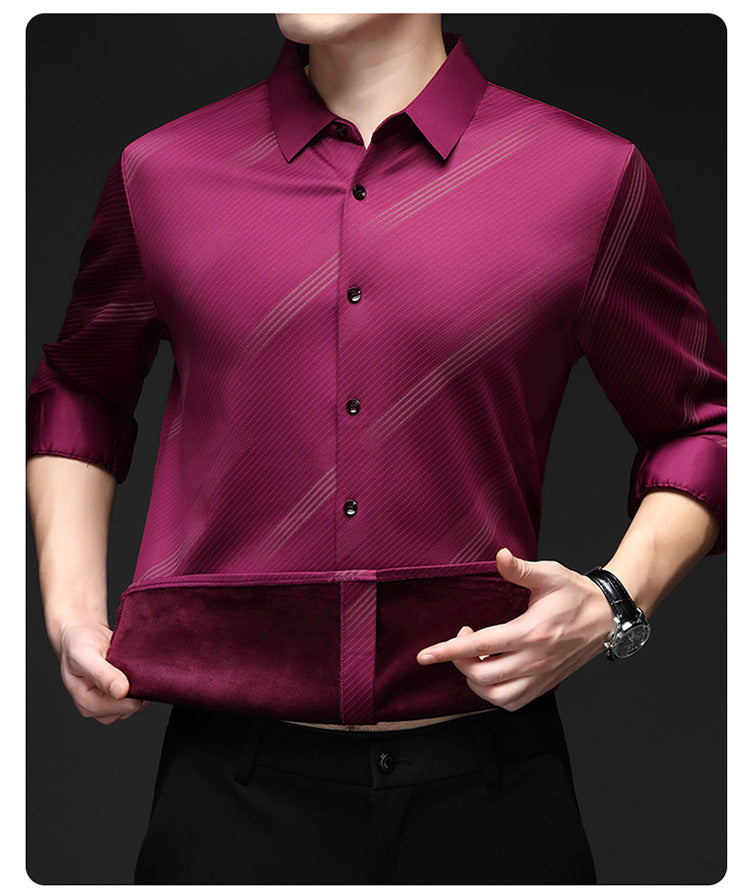 Package Includes:1*Men's Warm Striped Shirt with Comfort Fit