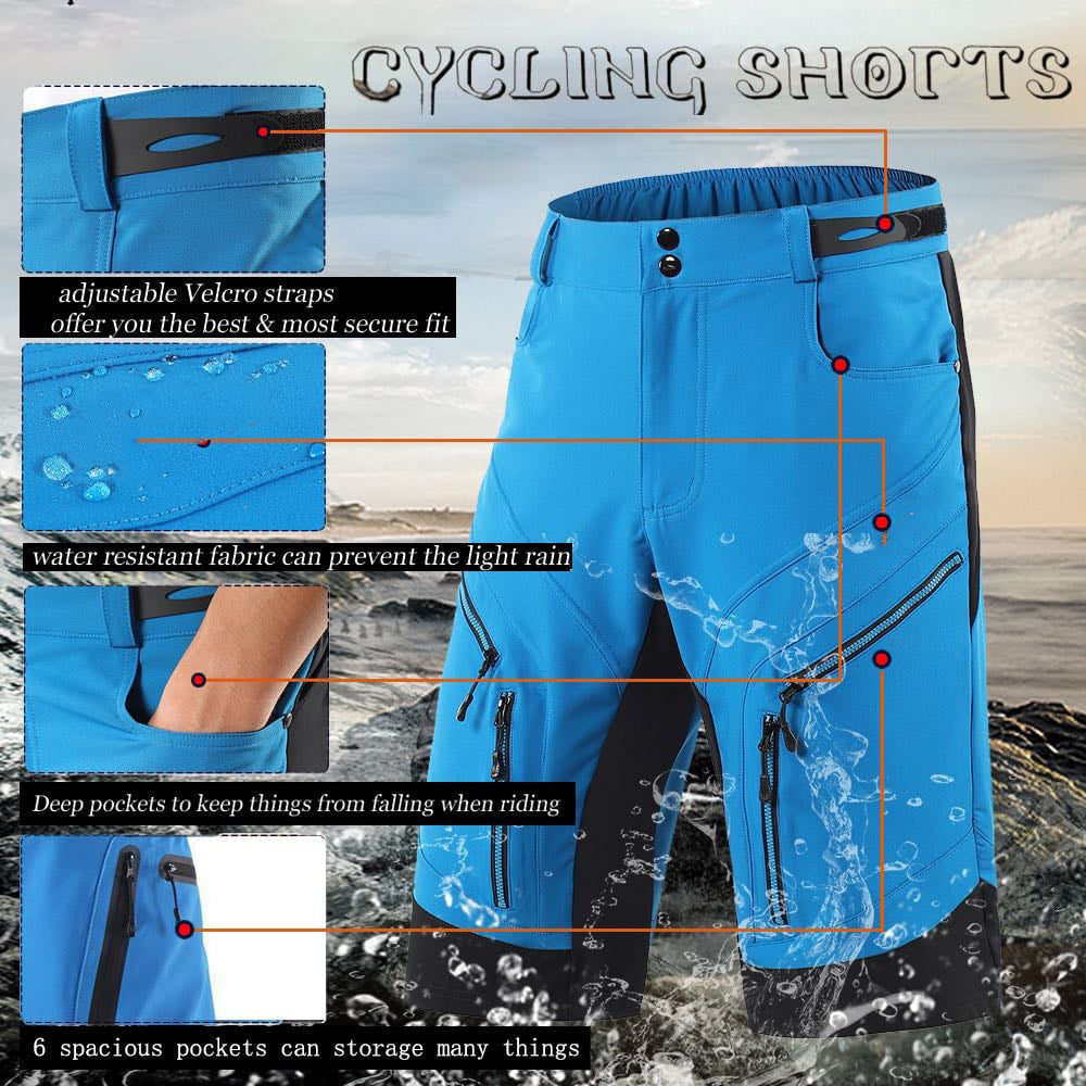 WATER RESISTANT & VERSATILE: this shorts can prevent light rain. Our loose-fitting cycling shorts are non-restrictive, suitable for cycling, running, hiking, climbing, traveling, camping, mountaineering, fishing and other outdoor activities.