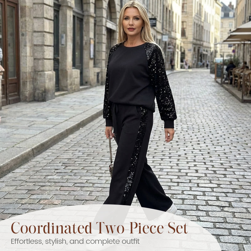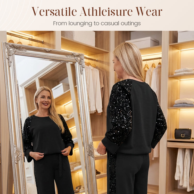 SPARKLING SEQUIN PANELS - Elevate your casual look with eye-catching sequin details on the sleeves and pant legs. This chic design adds a touch of glamour, making it perfect for transitioning from day to night effortlessly.
