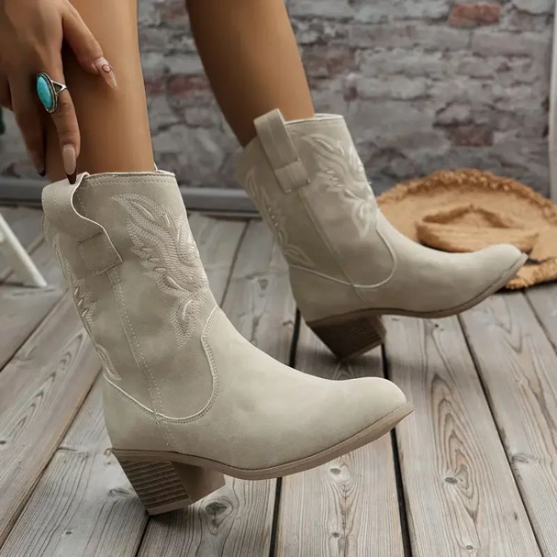 CHIC POINTED-TOE AND CHUNKY HEEL: The pointed-toe silhouette adds a touch of elegance and sophistication, making these boots perfect for casual and dressy occasions. The chunky heel offers excellent support and balance, allowing for comfortable all-day wear without sacrificing style for navigating various terrains.