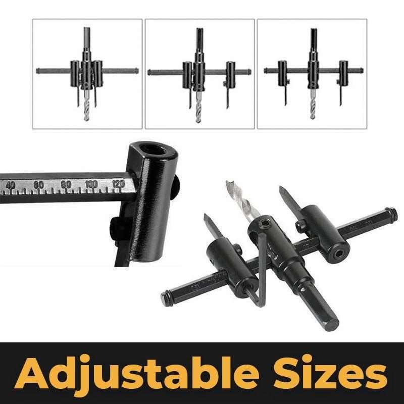This woodworking hole saw with adjustable diameters from 30-120mm, 30-200mm, 30-300mm, so that you can cut different sizes of holes with just one saw. No need to change the drill bits frequently.