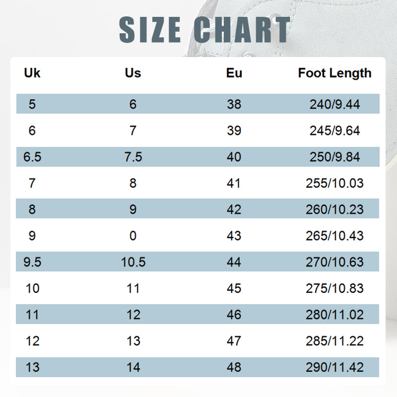 Size: 37, 38, 39, 40, 41, 42, 43, 44, 45, 46, 47, 48, 49, 50