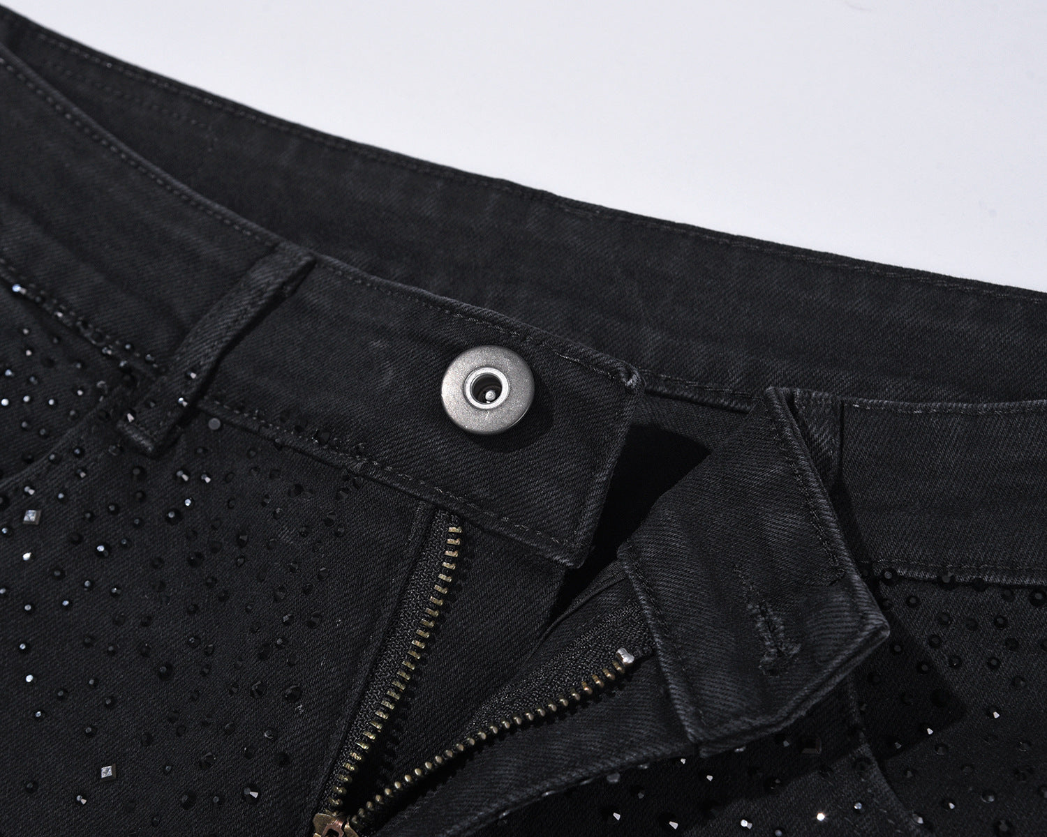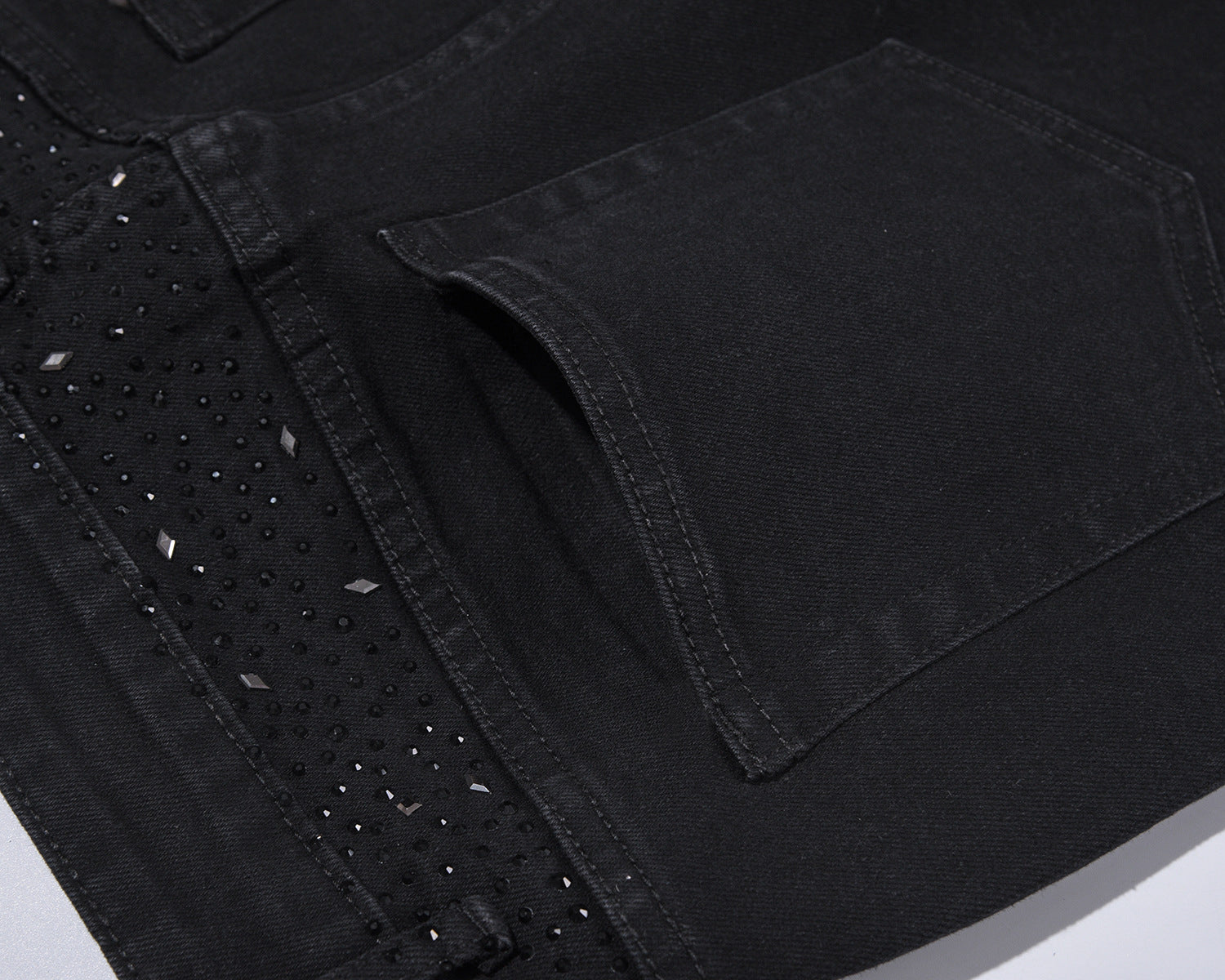 Rhinestone Embellished Slim-Fit Black Denim Jeans