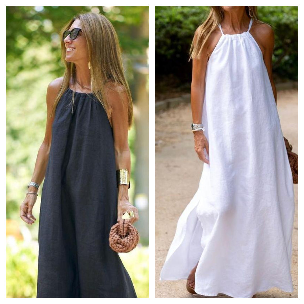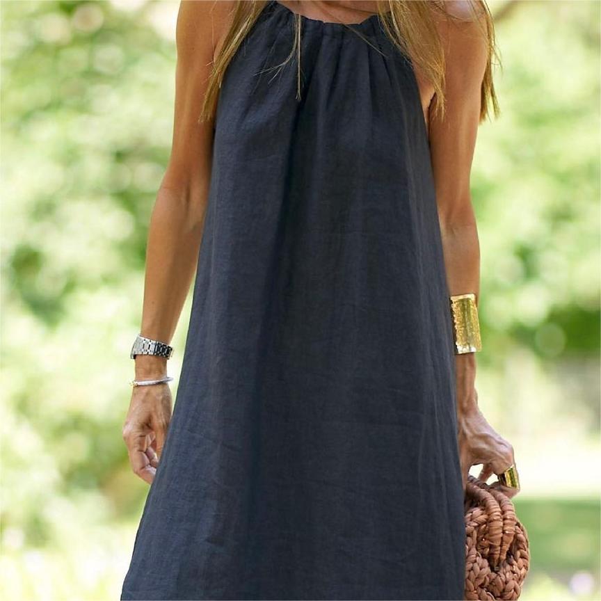 Package Included: 1* Solid Color Loose Breathable Halter Dress