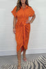 Elegant short sleeve satin ruched shirt dress