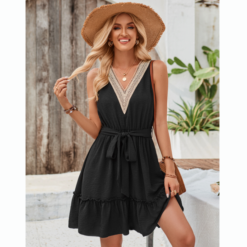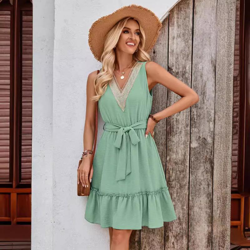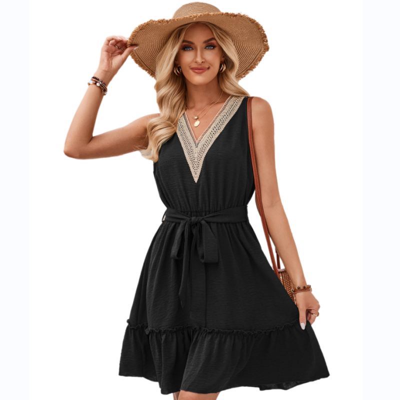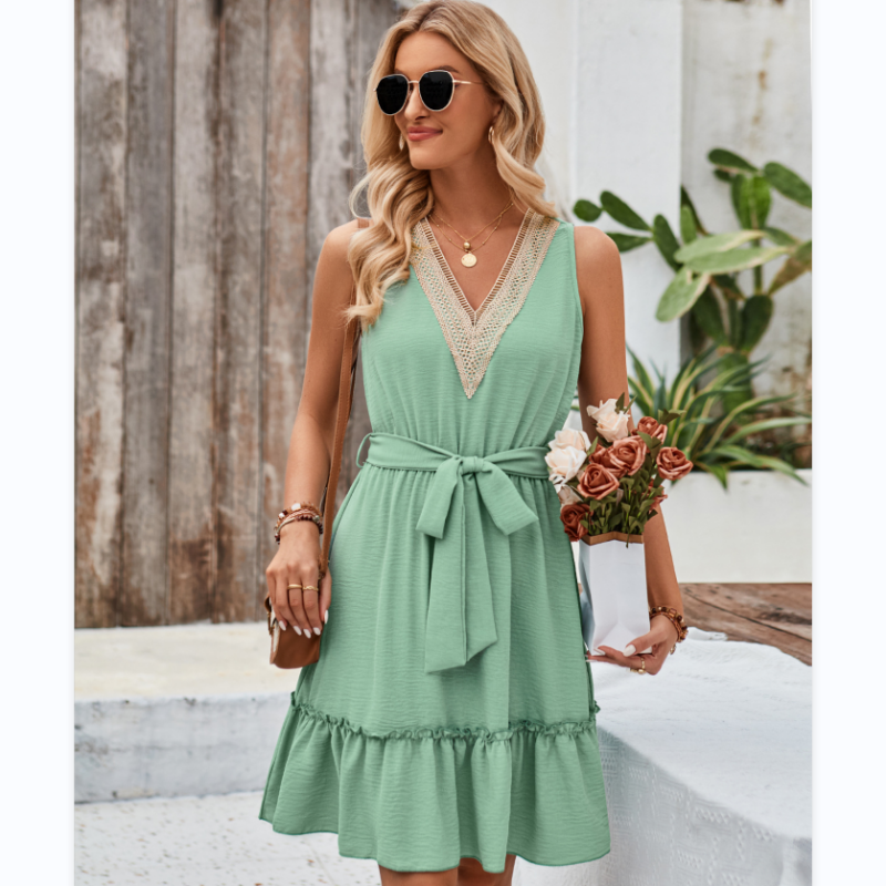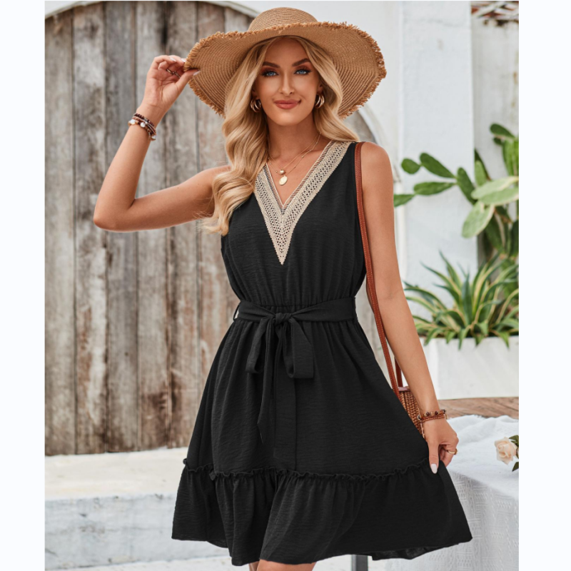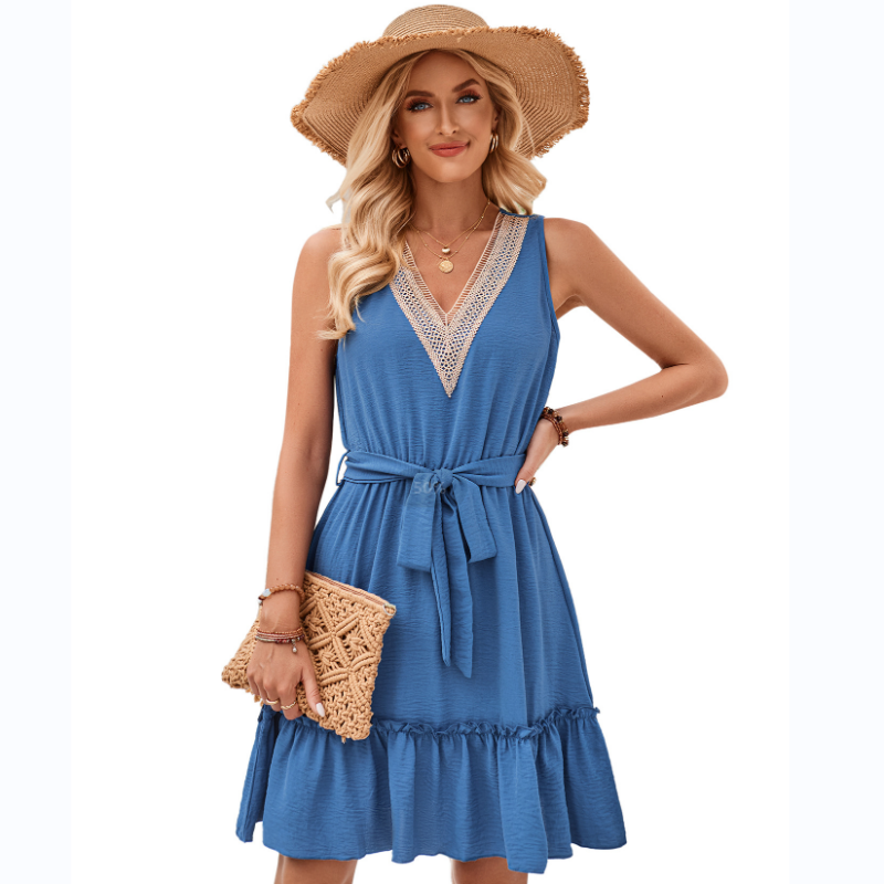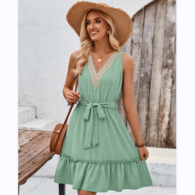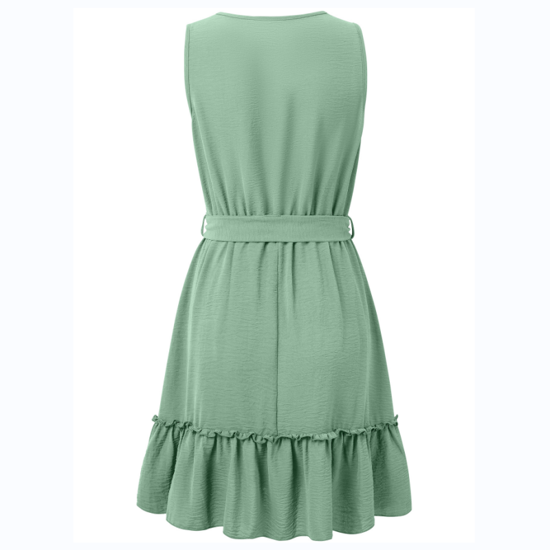 Elevate your wardrobe with a simple and sweet V-neck sleeveless dress.