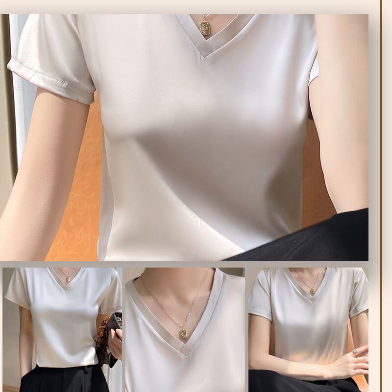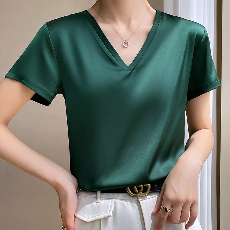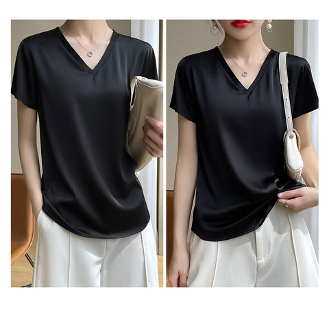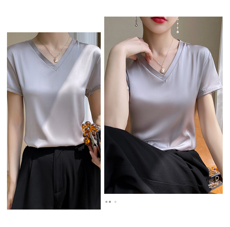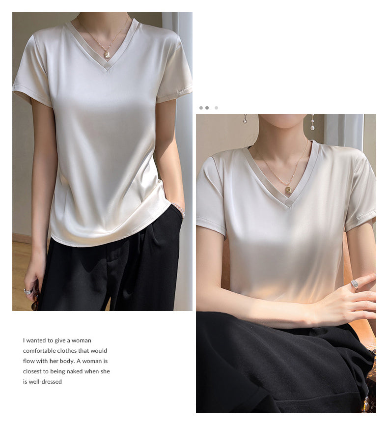 This short-sleeved satin t-shirt is a must-have for all women. Fashionable and elegant, comfortable and breathable, simple and elegant design, slim and highlight the charm. Whether for work or casual occasions, it gives you an elegant and stylish look.