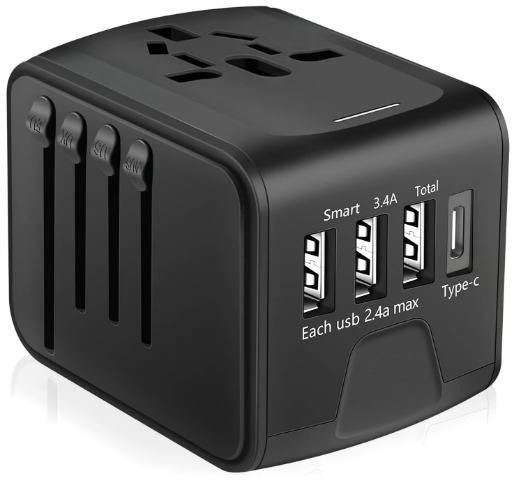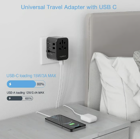 - USB C Universal Power Adapter: The 3 USB A ports can charge up to 2.4A/12W per port, and the USB C port can charge up to 3A/15W, ideal for cell phone, tablet, power bank, laptop, camera, ect. All the USB ports output: 5V/3.4A, 17W max