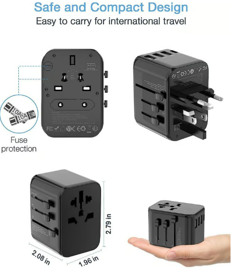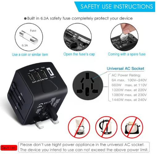 - Portable and Safety: Compact and lightweight design to fit into luggage and briefcases; As a travel outlet adapter, it has no surge protection, no cords, can be taken aboard cruise ship. The US to UK Plug Adapter with double fuse (fuse standard: 250V 10A), integrated security shutters, guard your travel security.