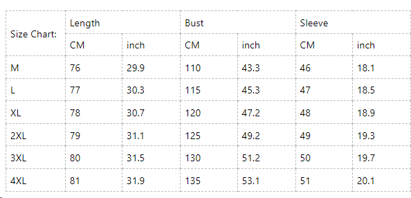 - Size: S/M/L/XL/2XL/3XL/4XL/5XL