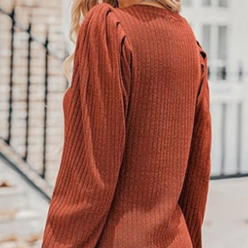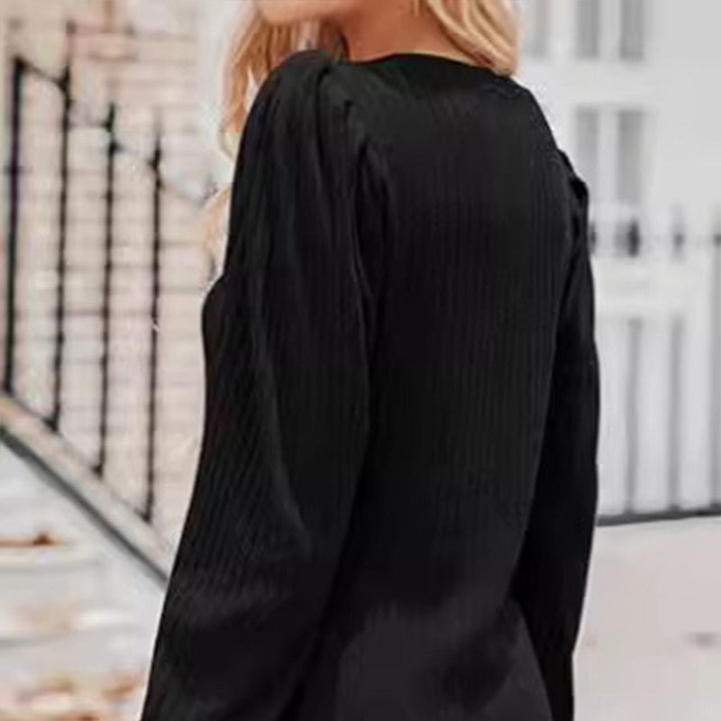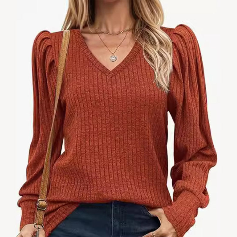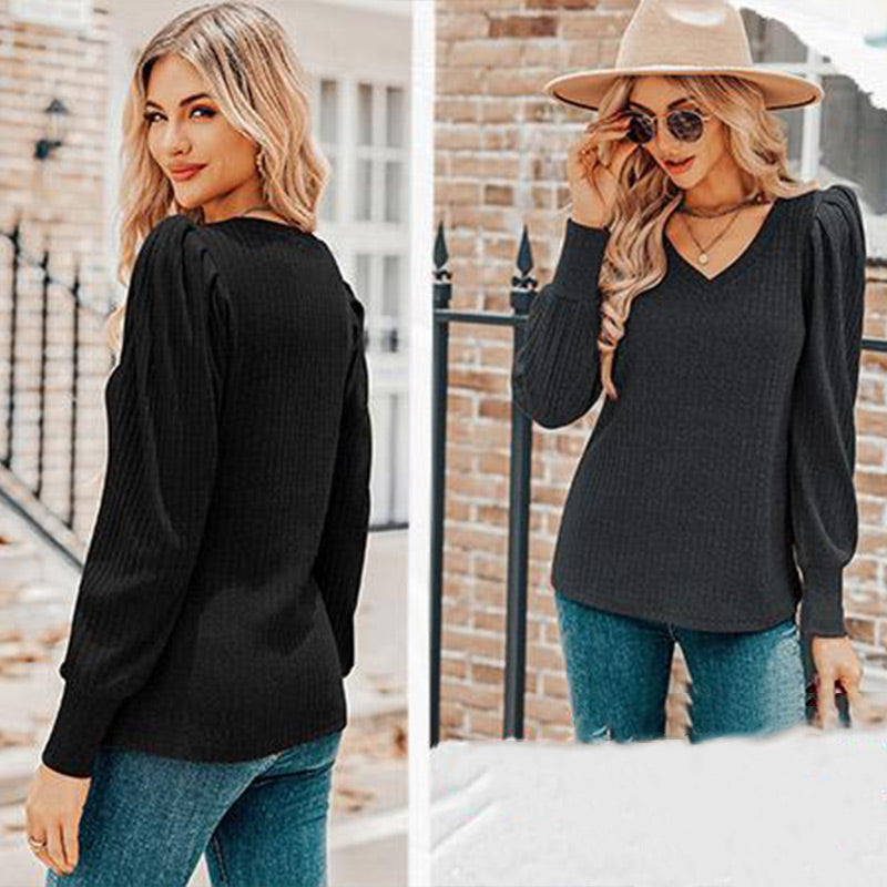 Women's V-Neck Pleated Sleeve Casual Top