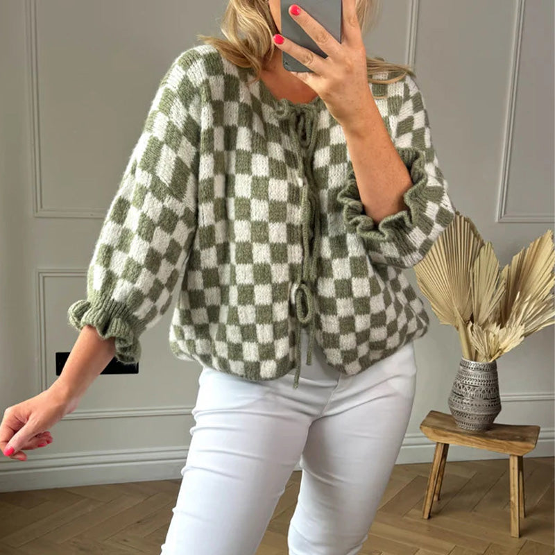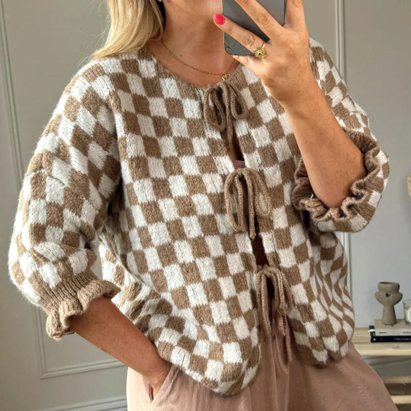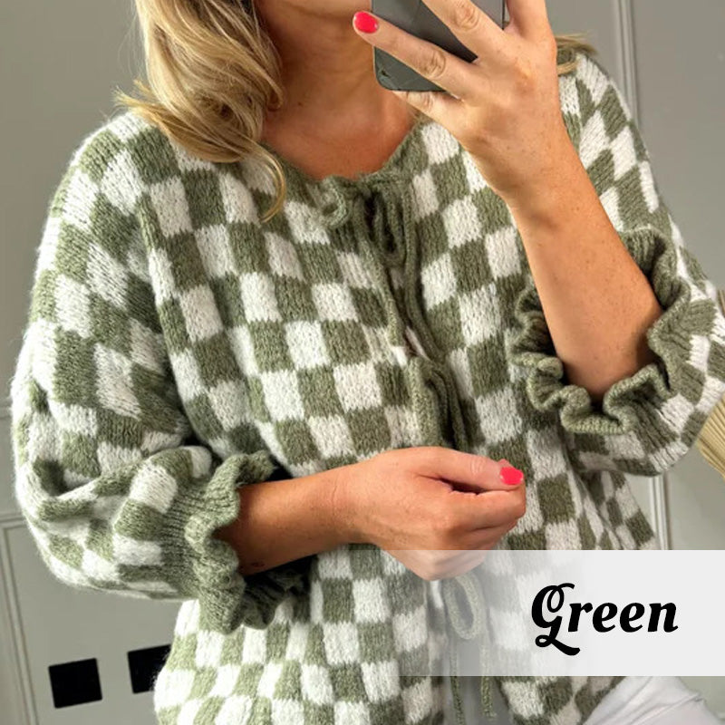 Women's Trendy Checkered Tie Front Knit Cardigan