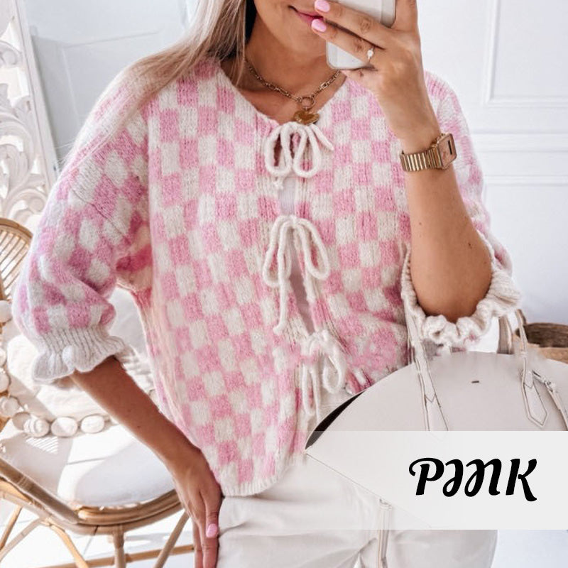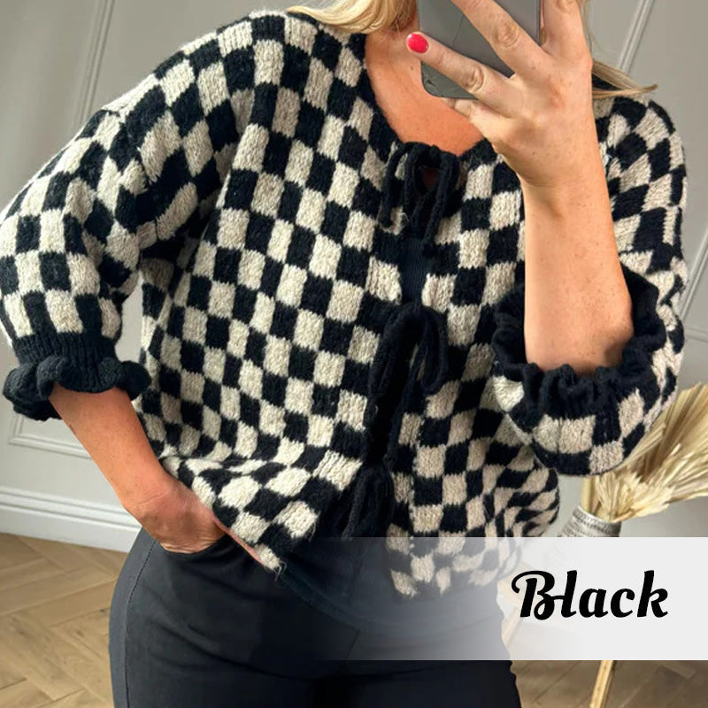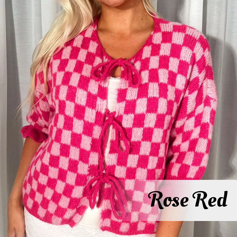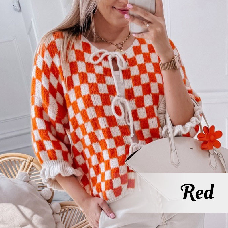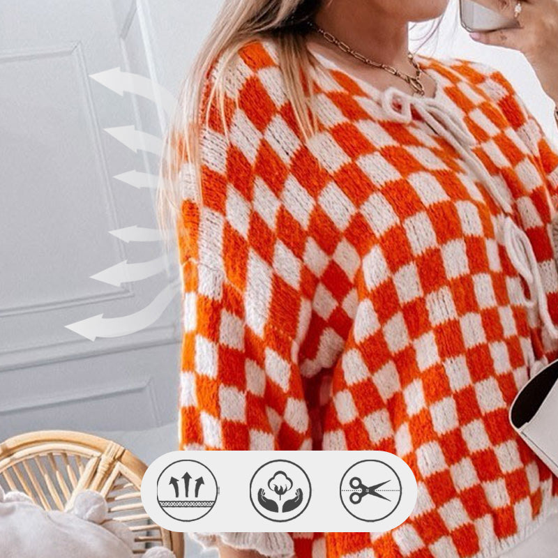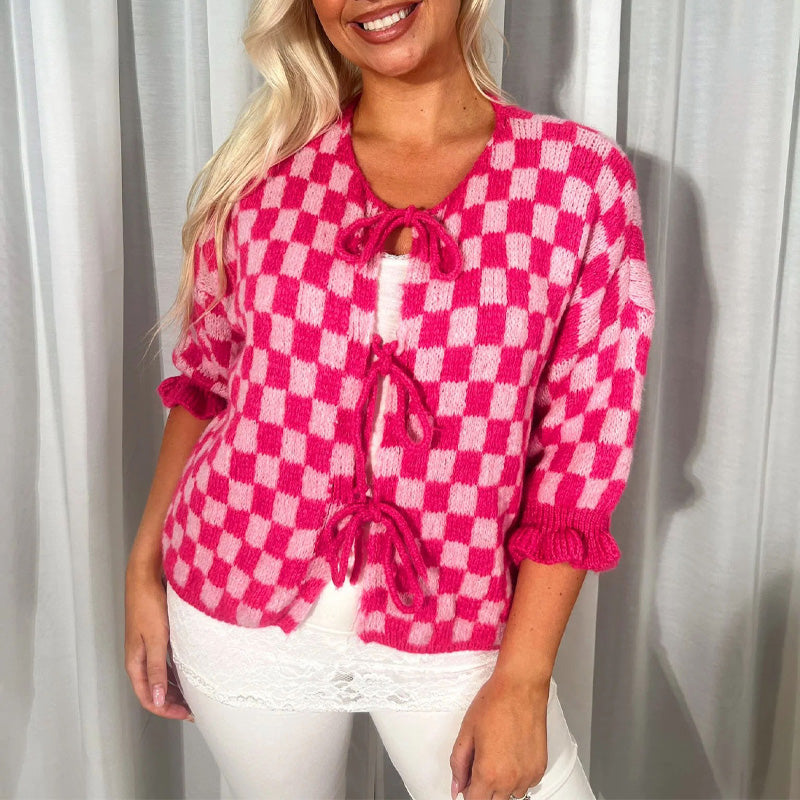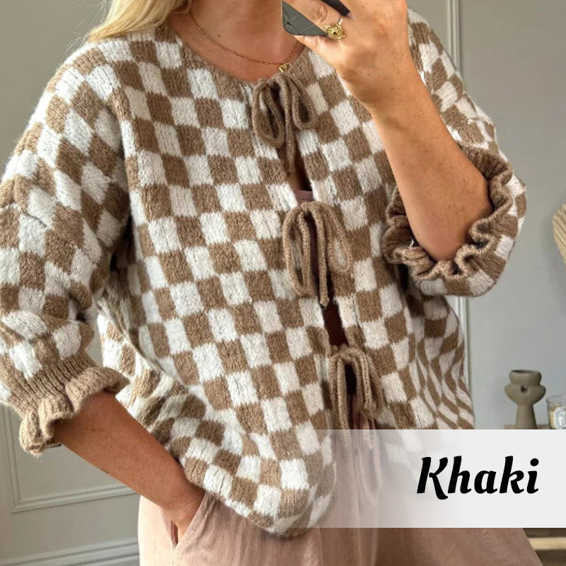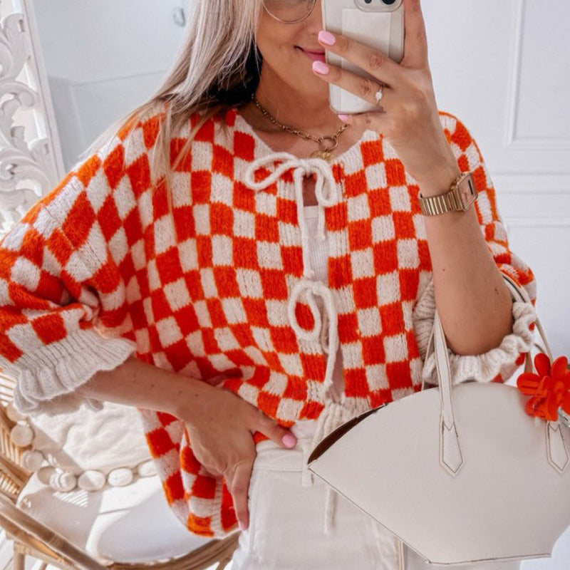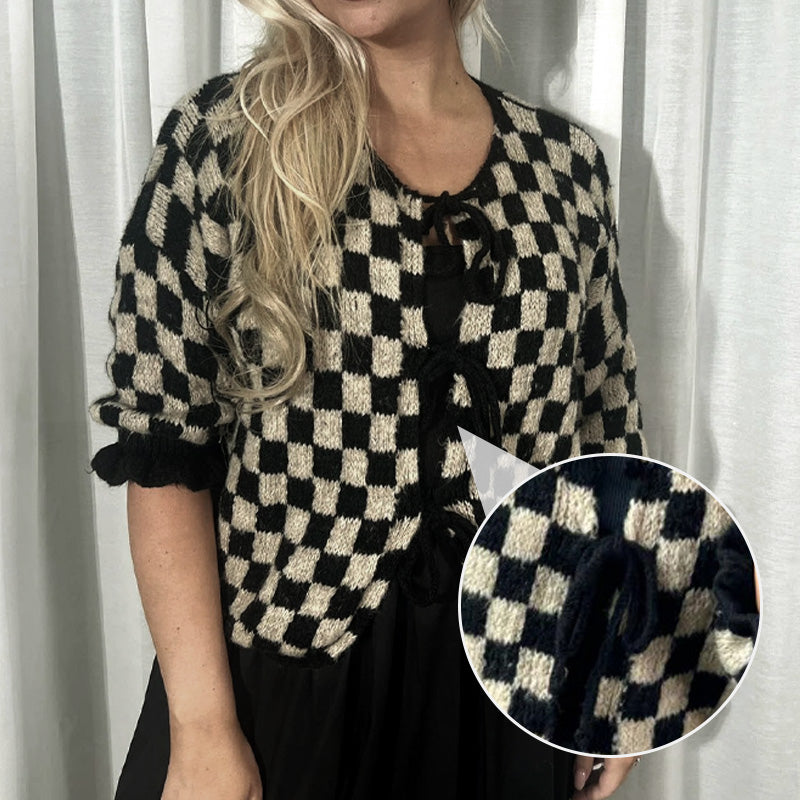 Package Included: 1 * Women's Trendy Checkered Tie Front Knit Cardigan