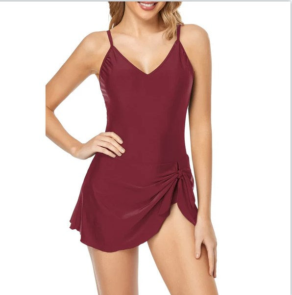 - One Piece Swimdress: Flattering and practical swim dress with built in mini skirt, soft removable padded, adjustable straps swimdress swimsuits for women with side slit skirted for big breast plus size skirted bathing suits, the side slit can tie as a knot when swimming. It is rather comfortable and breathable, nontoxic, quick dry skirted swimsuits.