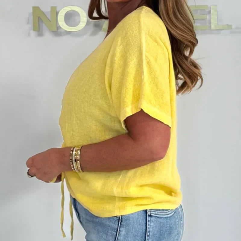 Women's Casual V-Neck Tie Front Short Sleeve Top
