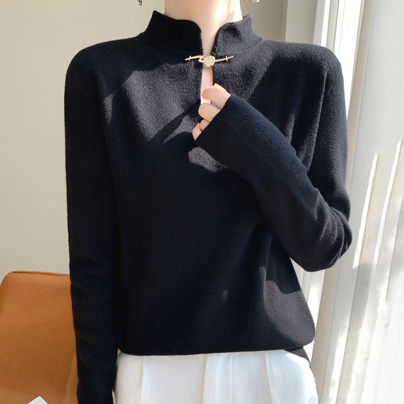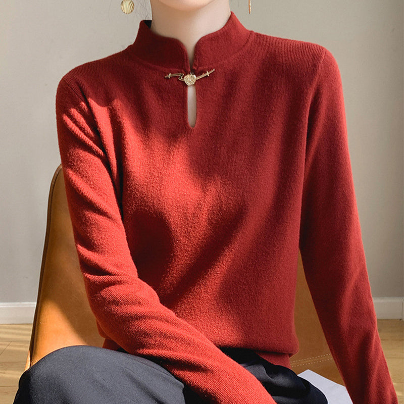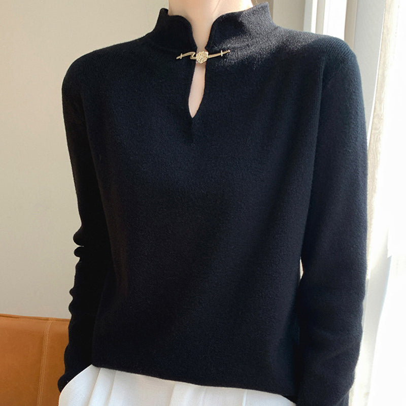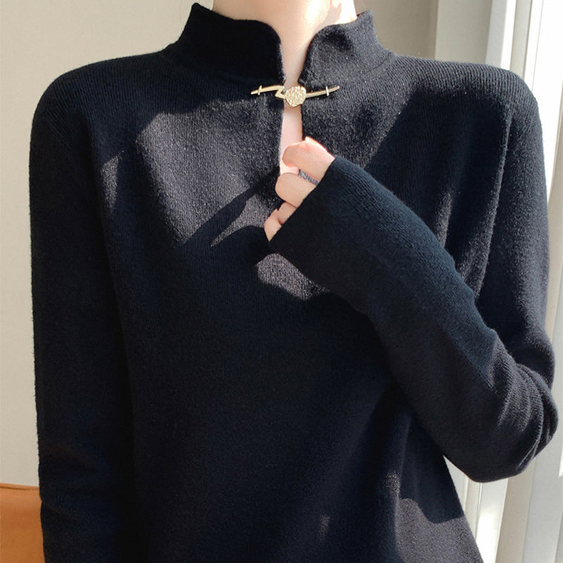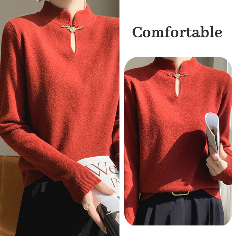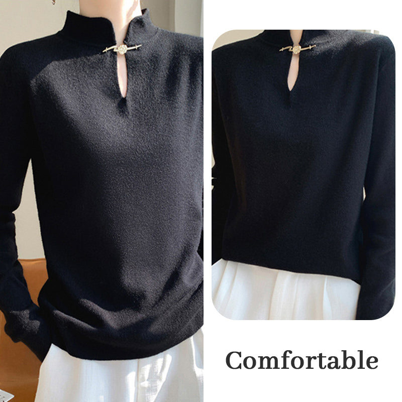 VINTAGE NECKLINE DESIGN: The neckline takes the vintage style design, which is very close to the neck, and will not be stacked on the neck like a turtleneck, which can keep you warm and very beautiful. With the similar style disk buckle, highlighting the charm.