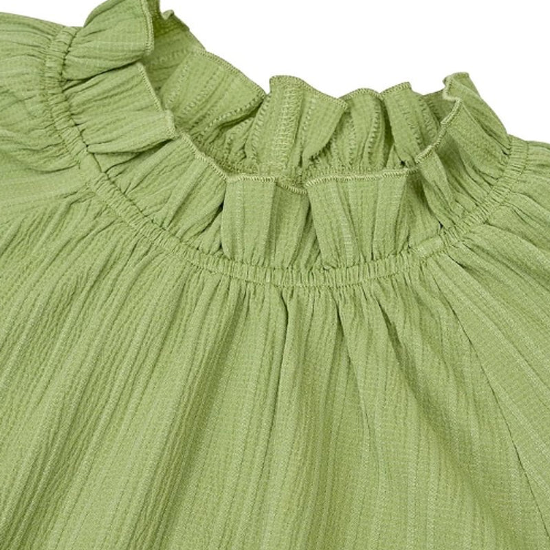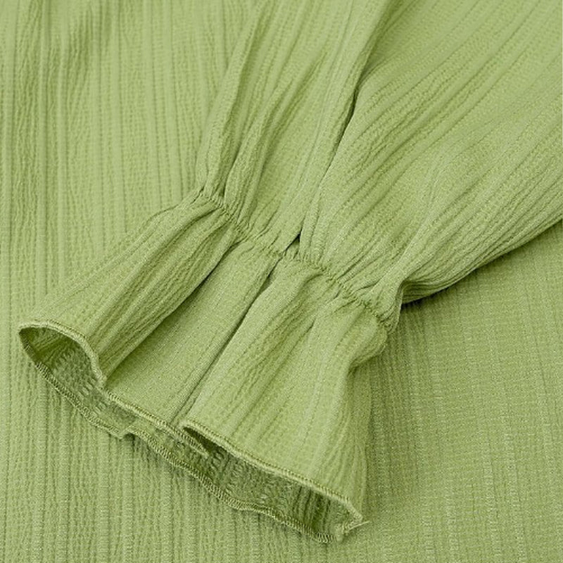 RUFFLE DESIGN: The long sleeves feature a charming ruffle detail, adding a touch of fashion-forward flair. The slightly gathered neckline creates a subtle, elegant pleated effect. Ideal for enhancing your style with a sophisticated edge.