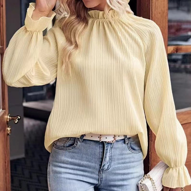 Women's Autumn Solid Ruffle Long-Sleeve Jacquard Top